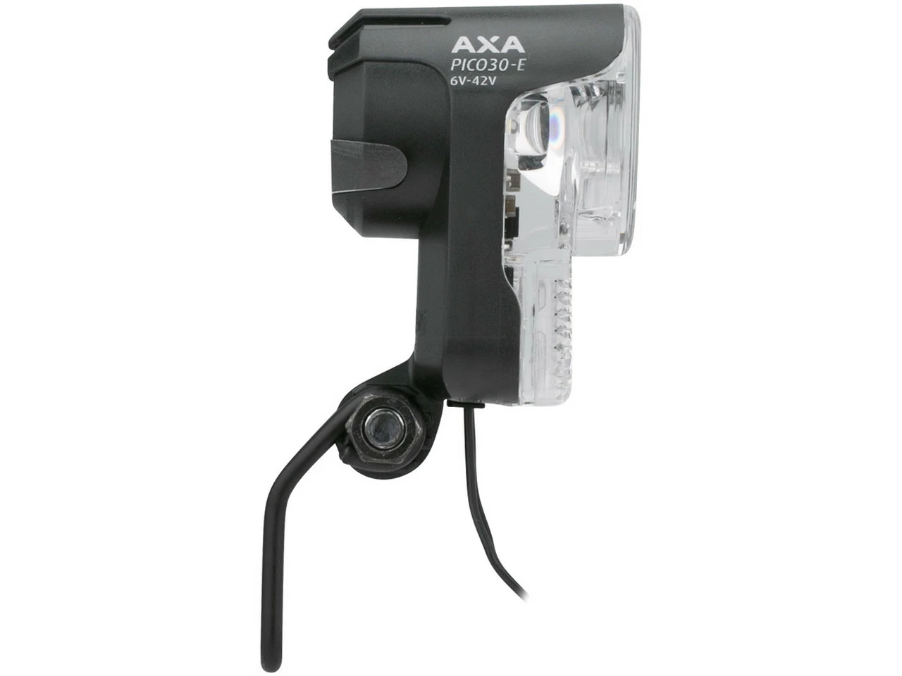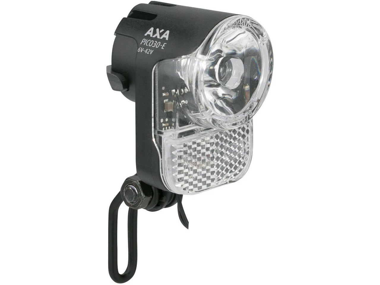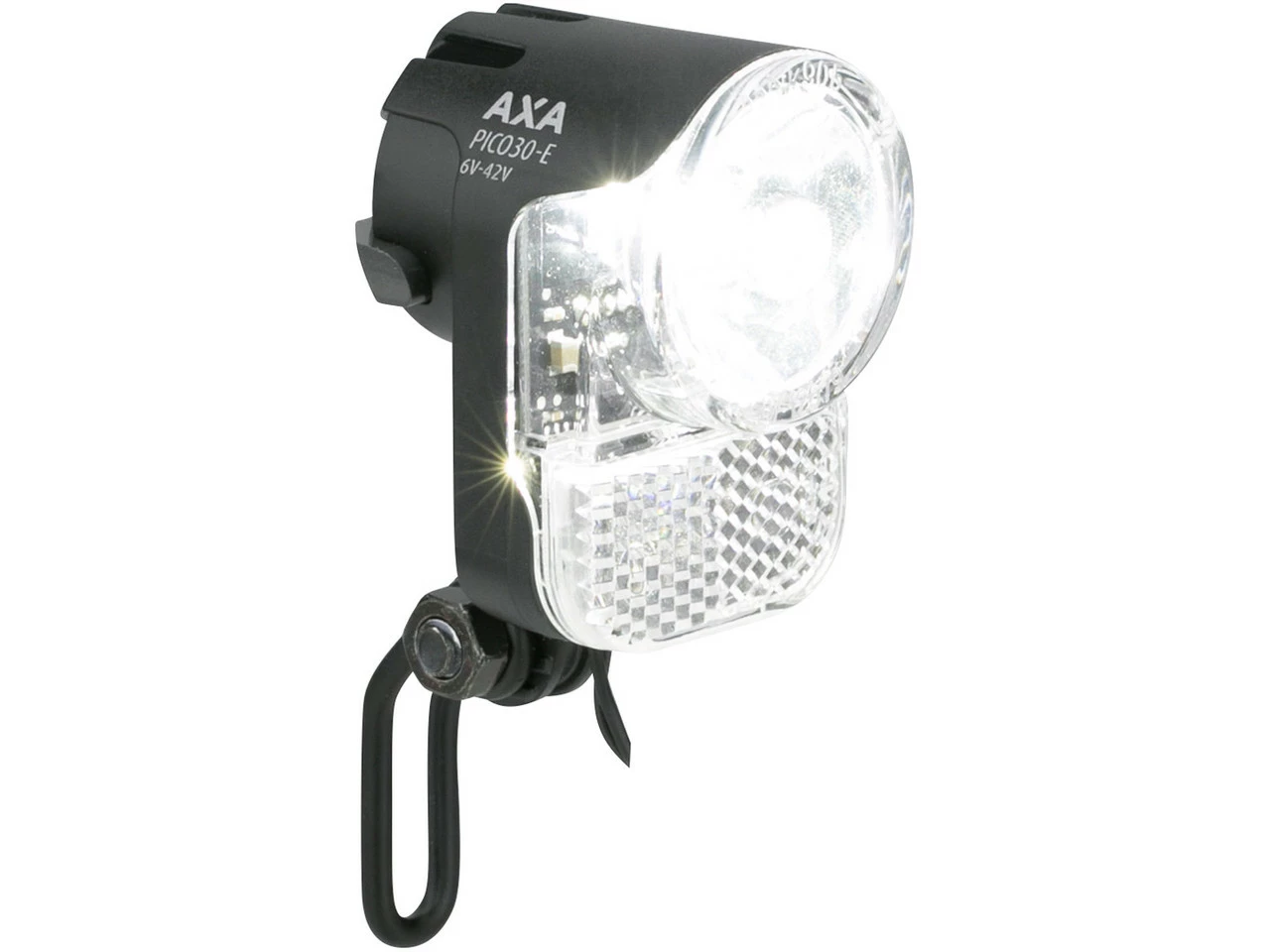 Das Pico 30-E E-Bike LED Frontlicht von Axa verträgt 6-42 Volt, ist somit nur für E-Räder geeignet und nutzt deren Gleichstrom-System.