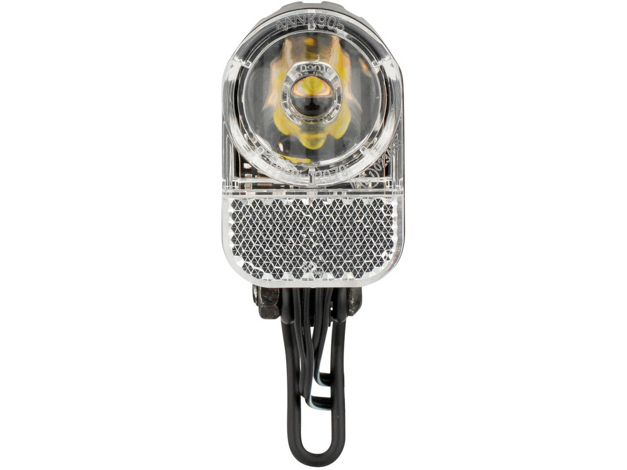 Spezifikationen:Ausführung:Frontlicht (weiß)Montage:Twinrod-HalterLeuchtmittel:1 x LEDLeuchtkraft:30 LuxBetriebsmittel:NabendynamoTechnische Daten:Material:KunststoffStandlicht:Ja (nicht abschaltbar)Schalter:Ein / Aus / Automatik (Sensor)Freigaben:Zulassung im Straßenverkehr:Ja, für Fahrräder (nach §67 StVZO)Prüfziffer:K~~905Features:optimale LichtverteilungEdelstahlhalter für jeden Straßentyp geeignetkompaktes, sportliches Designverschiedene Halterungen für die Integration in die häufigsten Vordergabeln erhältlichergonomischer Bedienknopfmit An-/Aus-Schalter für Nabendynamoentspricht den deutschen (StVZO) und französischen VorschriftenTechnologien:Clear Lens Technology