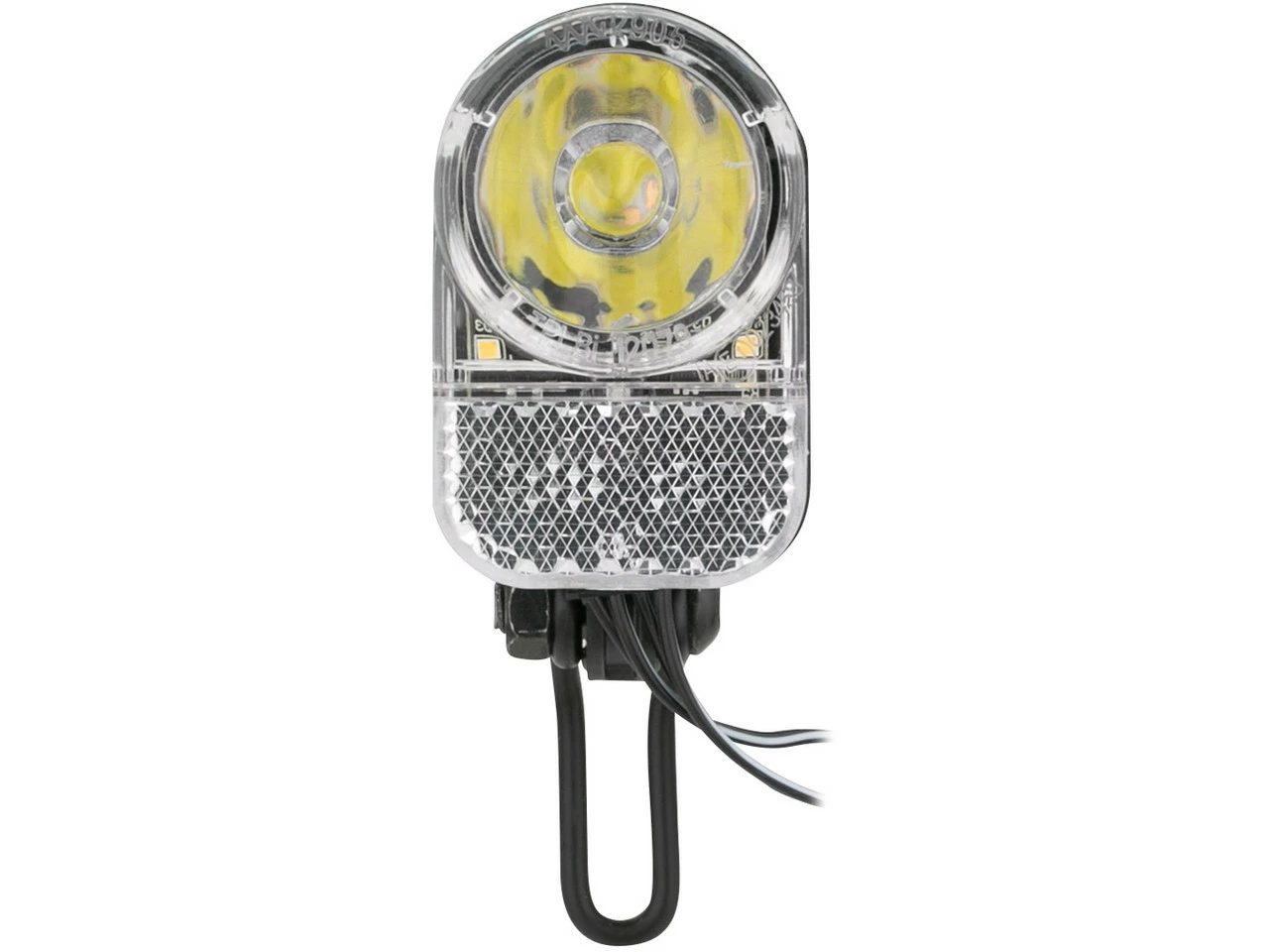 Technische Daten:Ausführung:Frontlicht (weiß)Leuchtmittel:Hochleistungs-LEDBetriebsmittel:NabendynamoZulassung im Straßenverkehr:Ja, für Fahrräder nach §67 StVZOBeleuchtungsstärke:30 Lux/Auto, Tag 10 Lux, Nacht 30 LuxLebensdauer:50.000 StundenEin-/Ausschaltautomatik:NeinLadezeit Kondensator:4 MinutenStandlicht:NeinMontage:Twinrod-HalterTechnologien:Clear Lens Technology, TagfahrlichtFeatures:optimale LichtverteilungEdelstahlhalter für jeden Straßentyp geeignetkompaktes, sportliches Designverschiedene Halterungen für die Integration in die häufigsten Vordergabeln erhältlichergonomischer BedienknopfTagesbeleuchtung: 30 lx Hauptbündel für abends, 10 lx Hauptbündel + 2 extra leuchtende Sicherheits-LEDs tagsübermit An-/Aus-Schalter für Nabendynamoentspricht den deutschen (StVZO) und französischen VorschriftenTechnologien:Clear Lens Technology