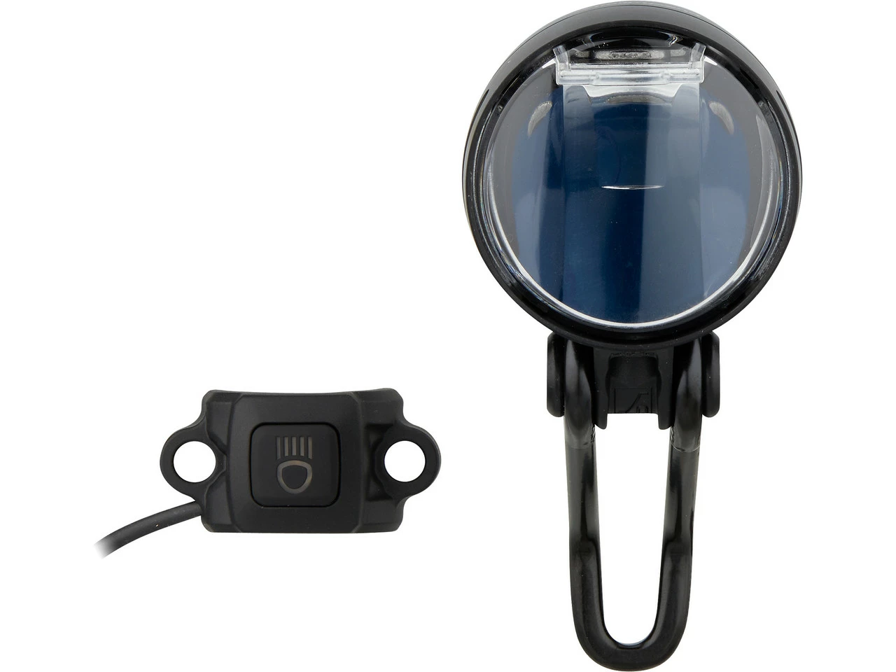 Lieferumfang:1 x Frontlicht busch+müller IQ-XS E High Beam1 x Fernlichttaster mit Kabel1 x Fernlichttaster-Unterteil1 x Anschlusskabel1 x Torx-Schlüssel2 x Schraube1 x Frontreflektor