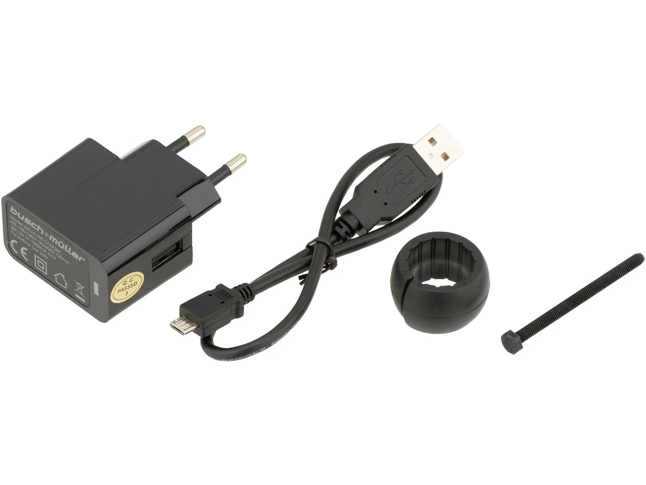 Lieferumfang:1 x Frontlicht busch+müller Ixon Fyre1 x Lithium-Ionen-Akku busch+müller Ixon Fyre1 x Halter busch+müller1 x USB-Kabel1 x Ladegerät