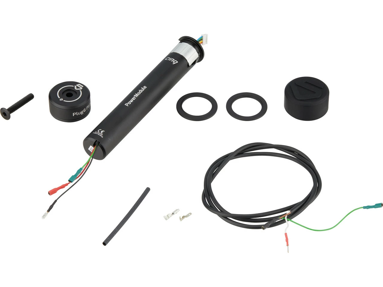 Lieferumfang:1 x Top Cap cinq Plug Plus1 x PowerModule cinq Plug Plus1 x Schutzkappe cinq Protection Cap1 x Kabelbaum cinq1 x Schraube M6x401 x Flachstecker1 x Schrumpfschlauch2 x Spacer