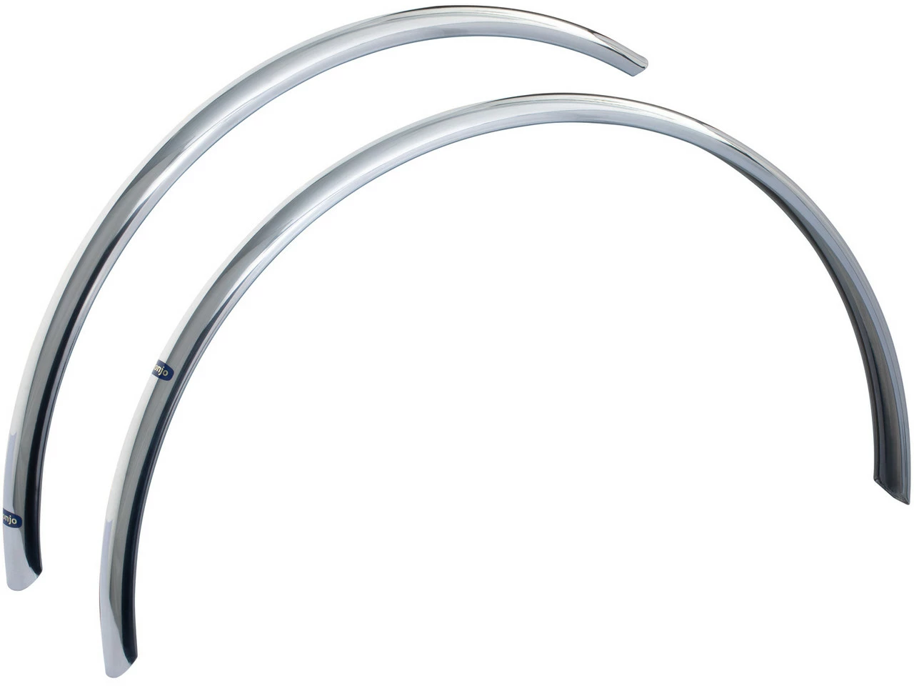 Das H30 Schutzblech Set von Honjo gehört zu den legendĂ€ren auf Hochglanz polierten Klassikern aus Japan. Die Schutzbleche decken eine Reifenbreite von bis zu 33 mm ab. Mit dem besonders weit umfassenden Profil wird Spritzwasser einwandfrei im Blech gefangen gehalten. Das heiĂt, auch FĂŒĂe und Kurbel bleiben trocken. Zudem verfĂŒgen die handgearbeiteten Schutzbleche von Honjo ĂŒber eine edle Optik, ein geringes Gewicht und eine ausgesprochen lange Haltbarkeit.