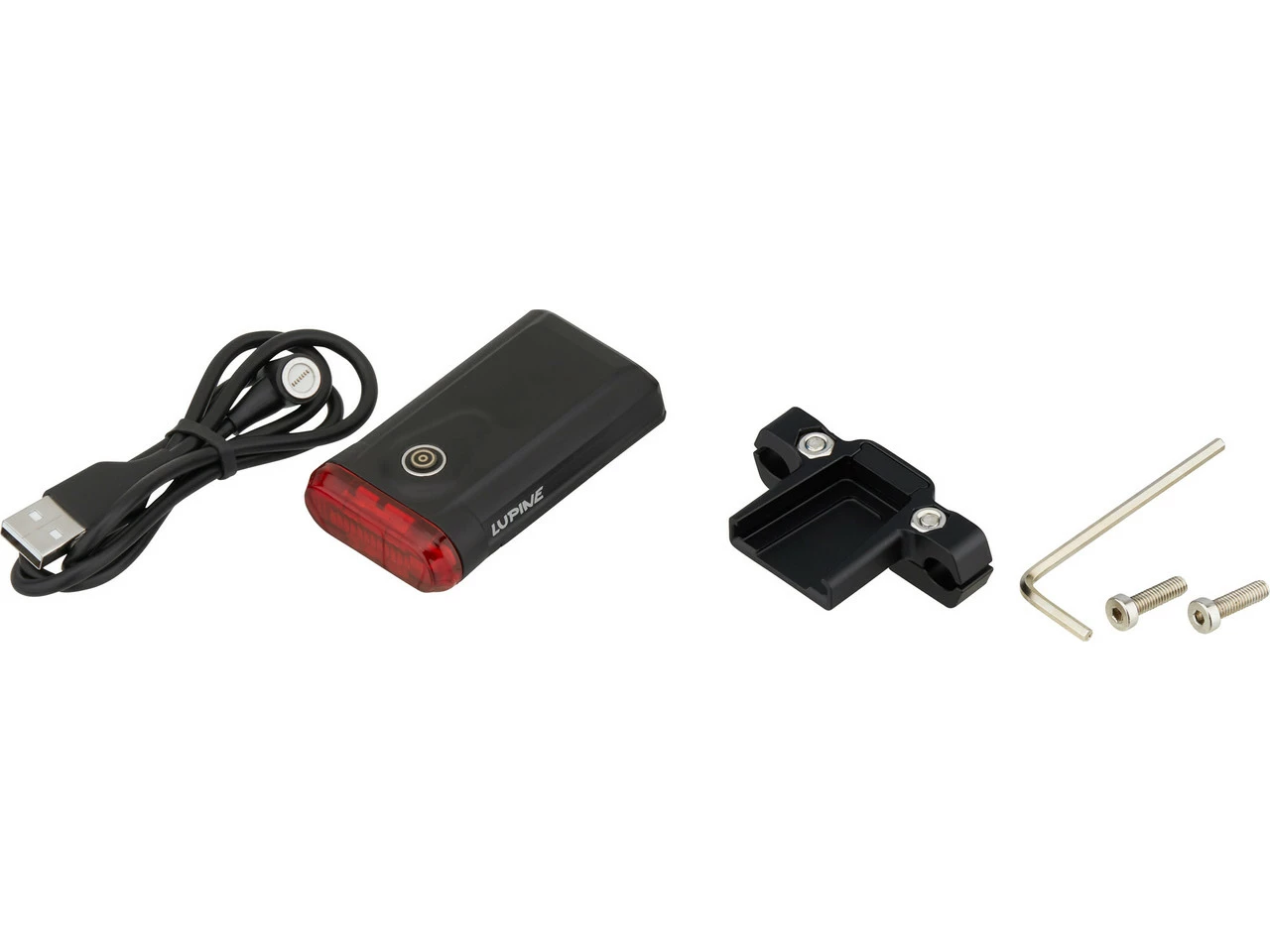 Lieferumfang:1 x Rücklicht Lupine C14 Mag1 x Magnethalterung Lupine Sattelstreben1 x USB-Ladekabel Lupine2 x Schraube Lupine