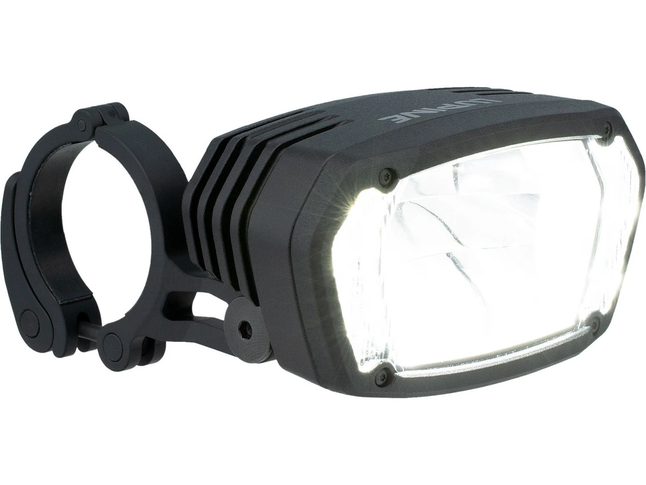 Spezifikationen:AusfĂŒhrung:Frontlicht (weiĂ)Montage:LenkerLeuchtmittel:LED (9 x Osram Automotive)Leuchtkraft:2200 Lumen, 340 Lux (Fernlicht), 1300 Lumen (Abblendlicht), 800 Lumen (gedimmtes Abblendlicht), 180 Lumen (Tagfahrlicht)Leuchtweite:370 m (Fernlicht)Betriebsmittel:Akku (Li-Ion)Technische Daten:Leuchtmodi:Tagfahrlicht, Abblendlicht, FernlichtSchutzklasse:IP68, IK09MaĂe (H x B x T):48 mm x 84 mm x 45 mmMaterial:Aluminium (6061-T6)Schalter:Bluetooth-Fernbedienung zur LenkermontageFreigaben:Zulassung im StraĂenverkehr:Ja, fĂŒr FahrrĂ€der (nach §67 StVZO)PrĂŒfziffer:K~~1753Features:Lupine Light Control Appwasserdicht und schlagfest nach IP68 und IK09echte Tagfahrlichtfunktion geprĂŒft nach ECE R87automatischer Wechsel zwischen Tagfahrmodus und Abblendlicht dank Stereo-SensorikEco Modus fĂŒr erhöhte Laufzeit des Fernlichts mit 1600 LumenUmschaltpunkt zwischen Tagfahrmodus und Abblendlicht ist kalibrierbarGehĂ€use gefrĂ€st aus einem einzigen StĂŒck AluminiumCNC-gefrĂ€ster Schnellspanner zur Lenkermontageinklusive Bluetooth-Fernbedienung zur Montage am Lenker mit LeuchtanzeigeEinsatzbereich -25 °C bis +70 °CAusfĂŒhrungen:schwarz / 2200 Lumen, 31,8 mm: