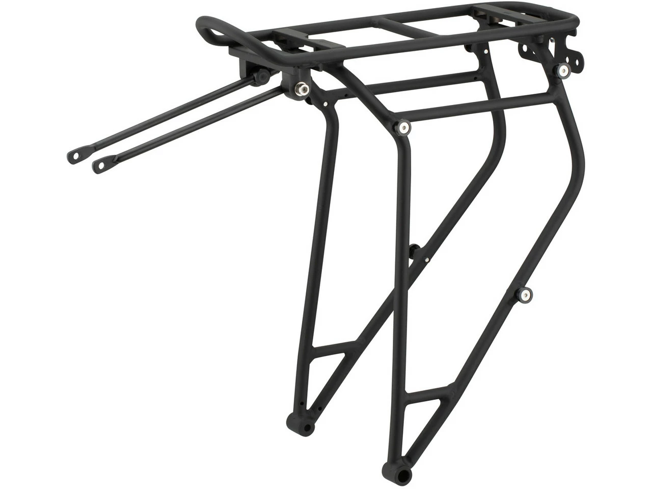 Der ORTLIEB Rack Three Gepäckträger mit QL3- / QL3.1-Befestigung ist ein echter Allrounder, der alle ORTLIEB Befestigungssysteme aufnehmen kann – plus Korb. Der Gepäckträger weist Halterungselemente für das ORTLIEB QL3- / QL3.1-System auf, so kannst Du z. B. Deine Single-Bag Tasche direkt anbringen, ohne weitere Vorkehrungen zu treffen. Doch auch mit dem QL2- / QL2.1-System ist der Rack Three kompatibel und wenn Du noch eine Tasche mit QL1 System besitzt, gibt es auch für deren Abspannhaken eine Einhängemöglichkeit. Die QL3- / QL3.1-Rastknöpfe können demontiert werden, falls Du sie nicht benötigst, dies erleichtert das Anbringen von QL2- / QL2.1-Taschen. Die doppelte Reling eröffnet Dir die Möglichkeit, sowohl seitliche Gepäcktaschen als auch einen Korb oder Trunk-Bag oben zu montieren. Der Rack Three ist also nicht nur für die tägliche Fahrt zur Arbeit oder zum Einkaufen geeignet, sondern auch für die große Fahrradtour. Mehr Gepäckträger geht nicht!