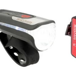 Das Aura 80 Frontlicht + Blaze Rücklicht mit Bremslicht LED Beleuchtungsset von Sigma – ein starkes Licht und Sicht Duo