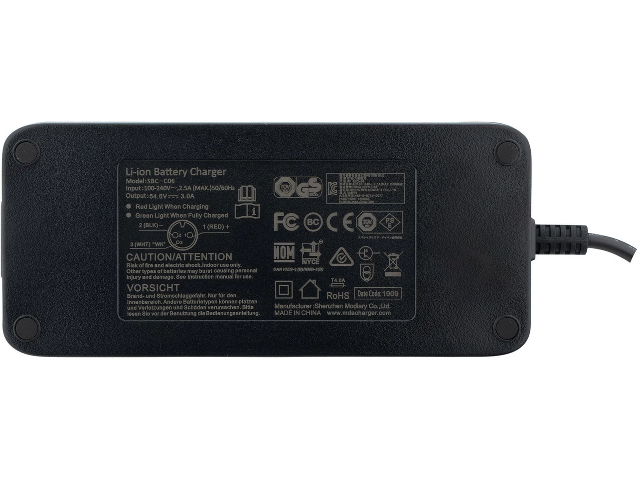 Spezifikationen:Betriebsspannung:54 VEingangswechselspannung:100 â 240 VFrequenz:50 / 60 HzMaximaler Ladestrom:3 ALadetemperatur:0 â +40 °CTechnische Daten:Abmessungen:177 x 78 x 38,5 mmLagerungstemperatur:-20 â +65 °CLadezeit:2:35 h (320 Wh), 3:20 h (160 Wh)KompatibilitĂ€t:Specialized SL E-Bike-Akkus mit 48 Volt BetriebsspannungFeatures:lĂ€dt Deinen Specialized Akku schnell aufkompaktes und leichtes Designmit speziellem SteckerLichtanzeige fĂŒr den Ladestatus: rot = Ladevorgang lĂ€uft, grĂŒn = Akku vollstĂ€ndig geladen, rot blinkend = LadefehlerHerstellernummer:98919-5642